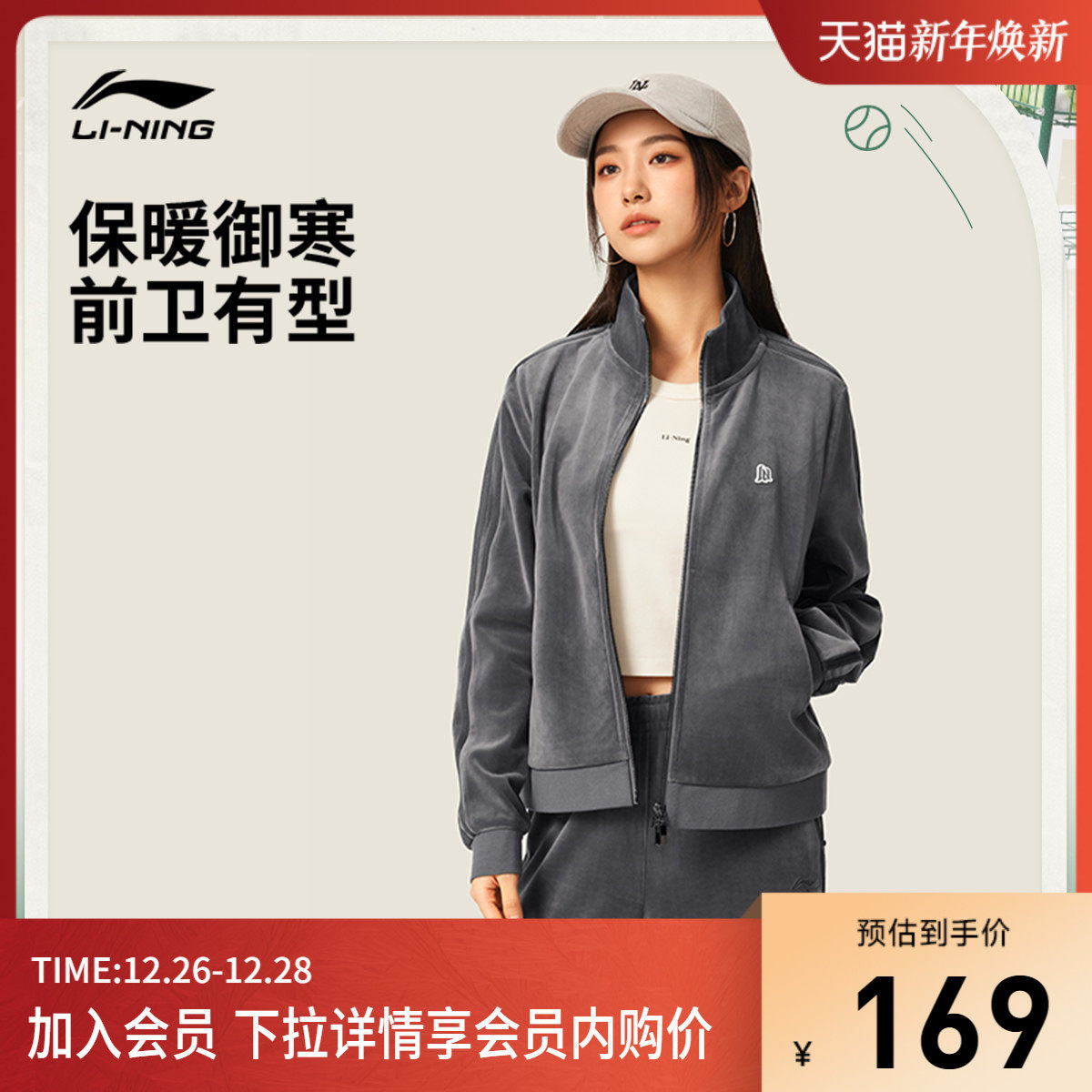 李宁丝绒外套女款官方冬季新款拉链正肩卫衣立领上衣针织运动服女