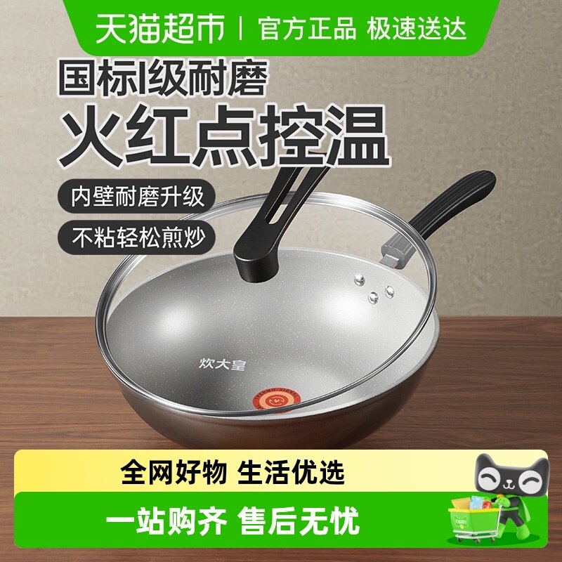 炊大皇炒锅加厚耐磨不粘锅家用锅具平底控温炒菜锅燃气煤气灶通用