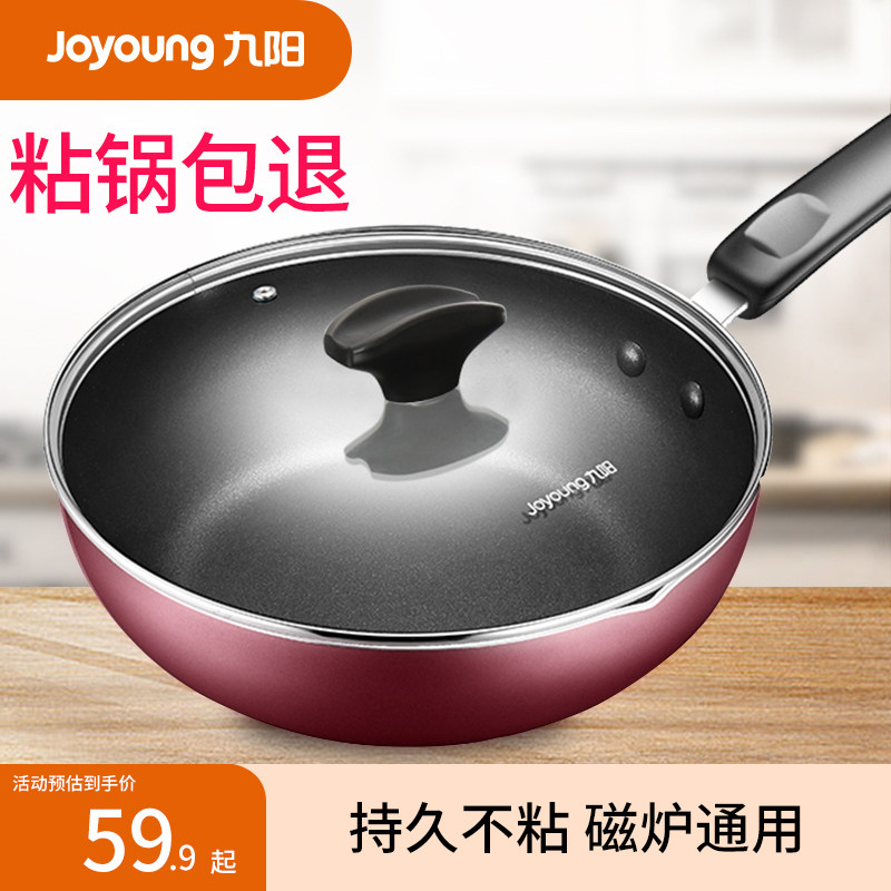 九阳不粘锅炒锅家用炒菜锅电磁炉专用燃气灶煤气灶适用锅具平底锅