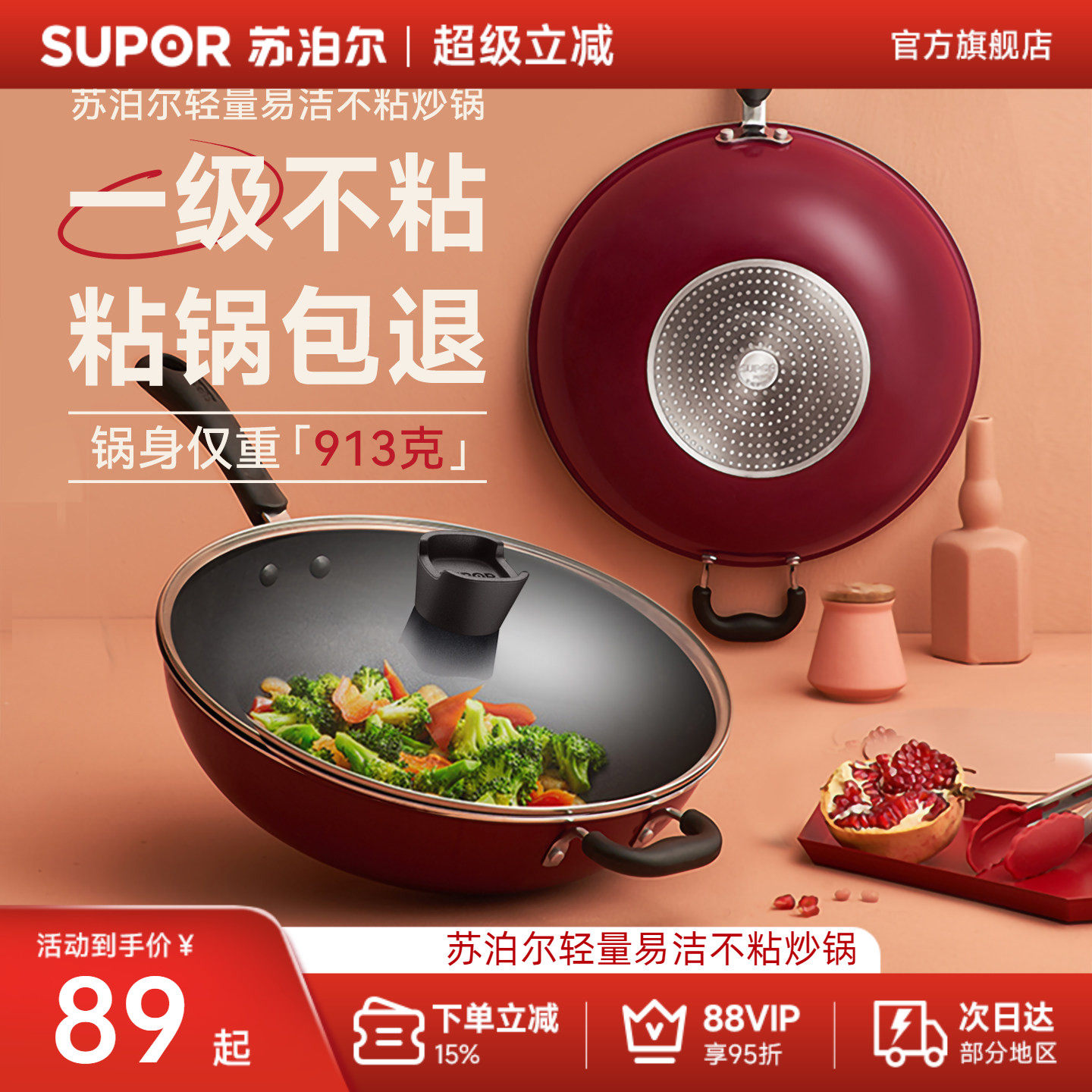 苏泊尔不粘锅炒锅家用炒菜锅电磁炉专用燃气煤气灶适用锅具平底锅