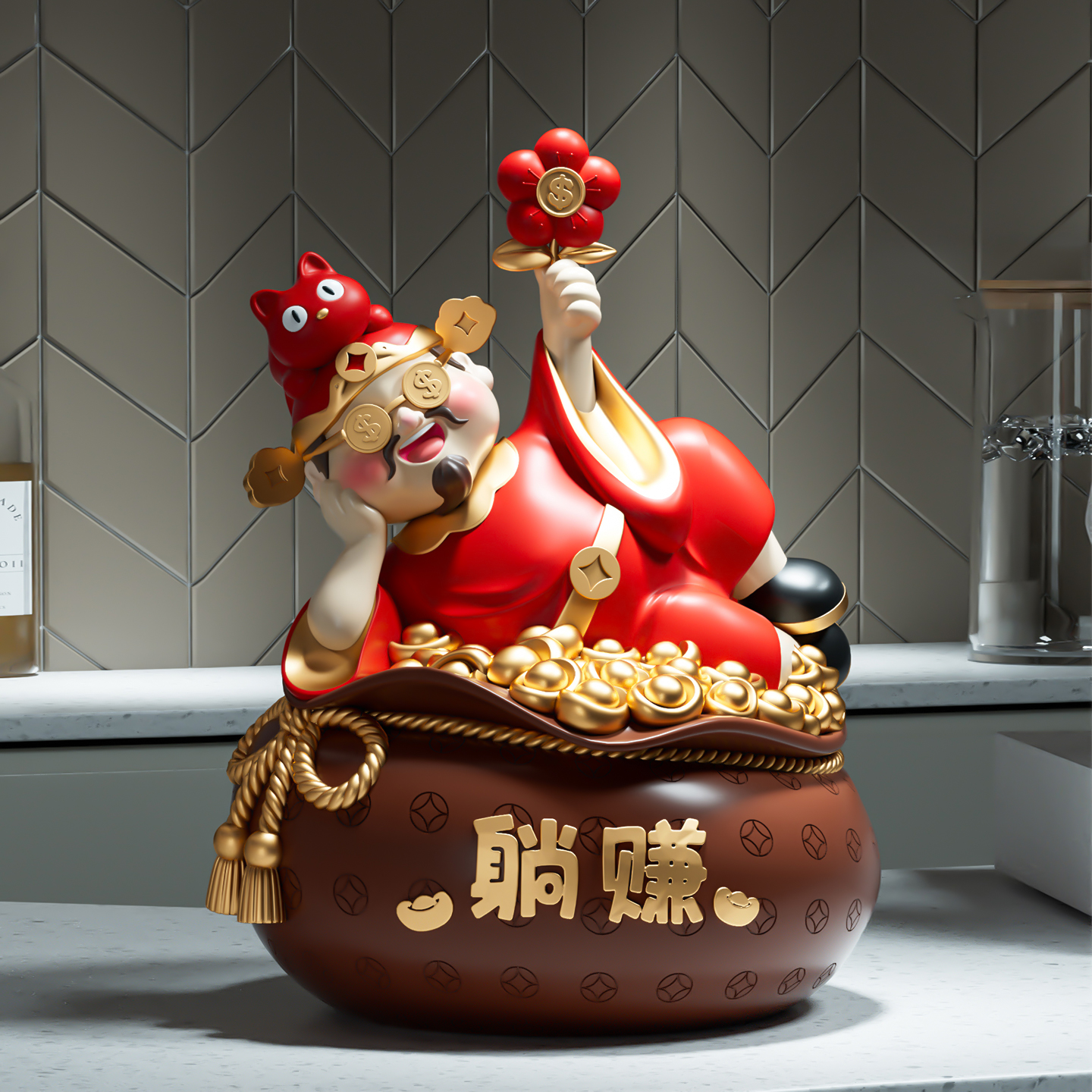 躺赚财神摆件客厅玄关招财店铺新店开店送朋友乔迁开业礼物装饰品