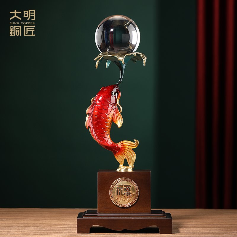 大明铜匠年年有余鱼摆件招财客厅装饰品玄关开店开业乔迁新居礼物