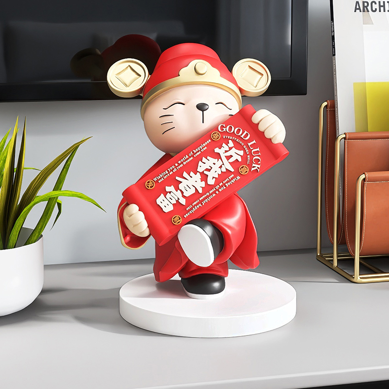 国潮醒狮招财猫摆件店铺收银台前台桌面装饰品送朋友开店开业礼物