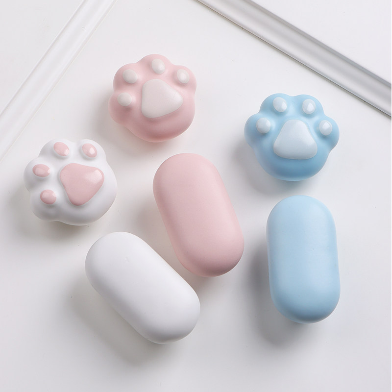 星翡可爱猫爪儿童房衣柜门把手柜子抽屉卡通拉手女孩陶瓷创意猫咪