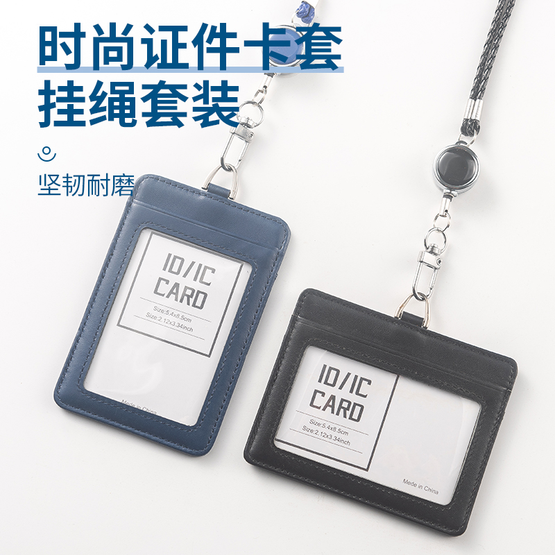 学生证件卡套挂绳PU工作证皮套工作牌皮卡套门禁厂牌套门卡胸牌套工作卡套校牌校园卡员工上岗证定制胸卡饭卡