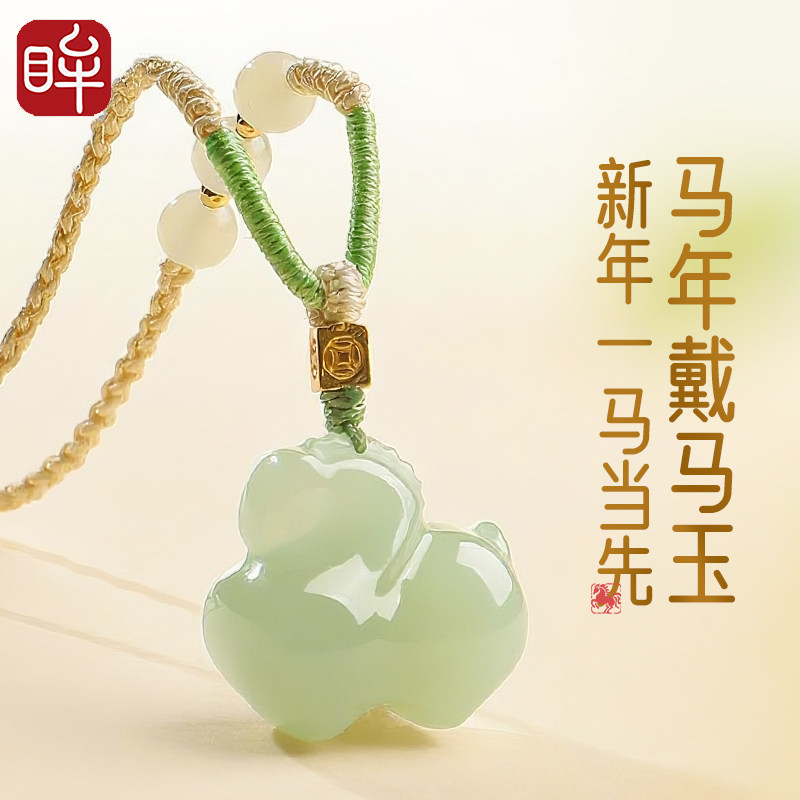 印象眸和田玉生肖马吊坠马到成功男女款儿童玉吊坠本命年生日礼物