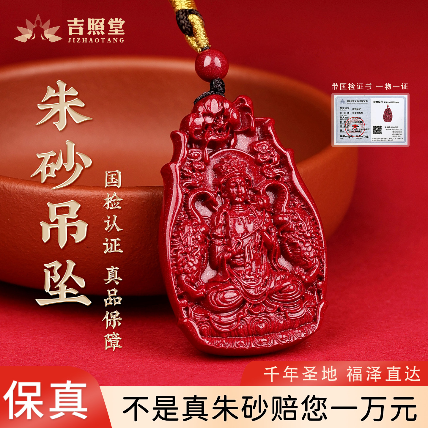 大善堂朱砂正品官方菩萨藏式彩绘马年本命年吊坠唐卡项链女男士礼