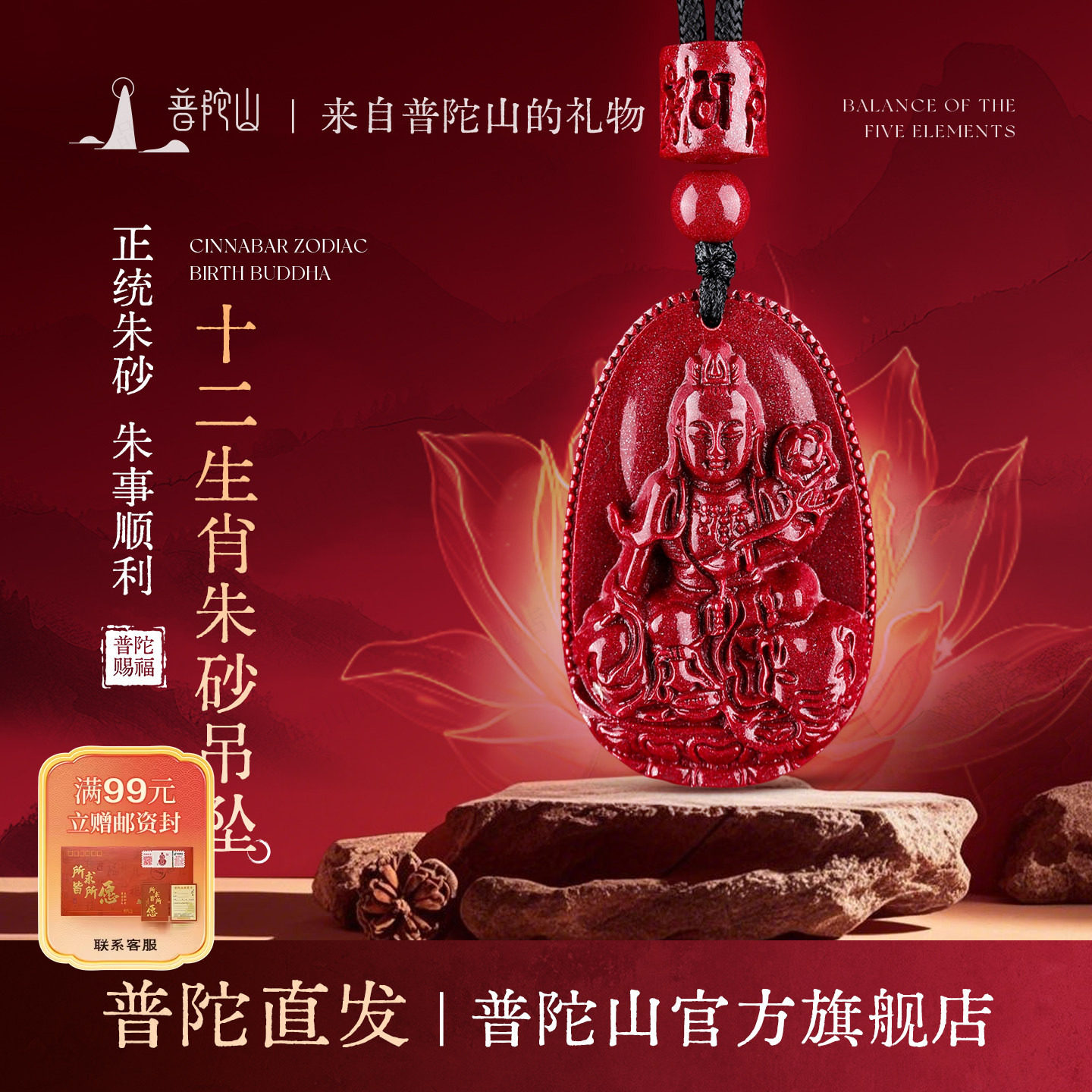 普陀山2026马年本命年朱砂本命佛吊坠女款十二生肖项链官方店男款