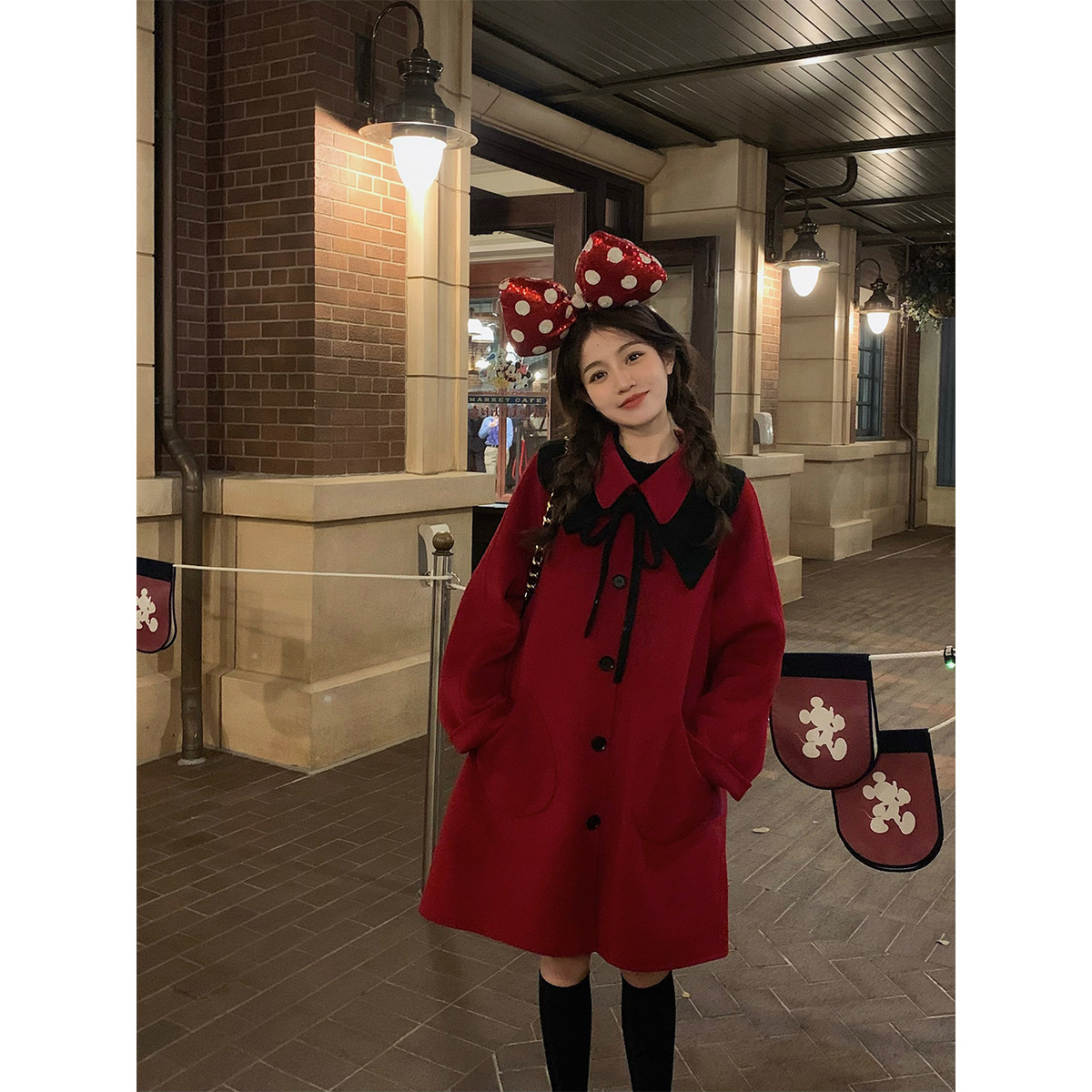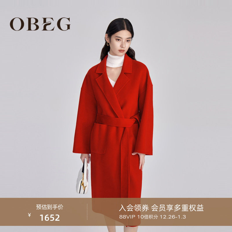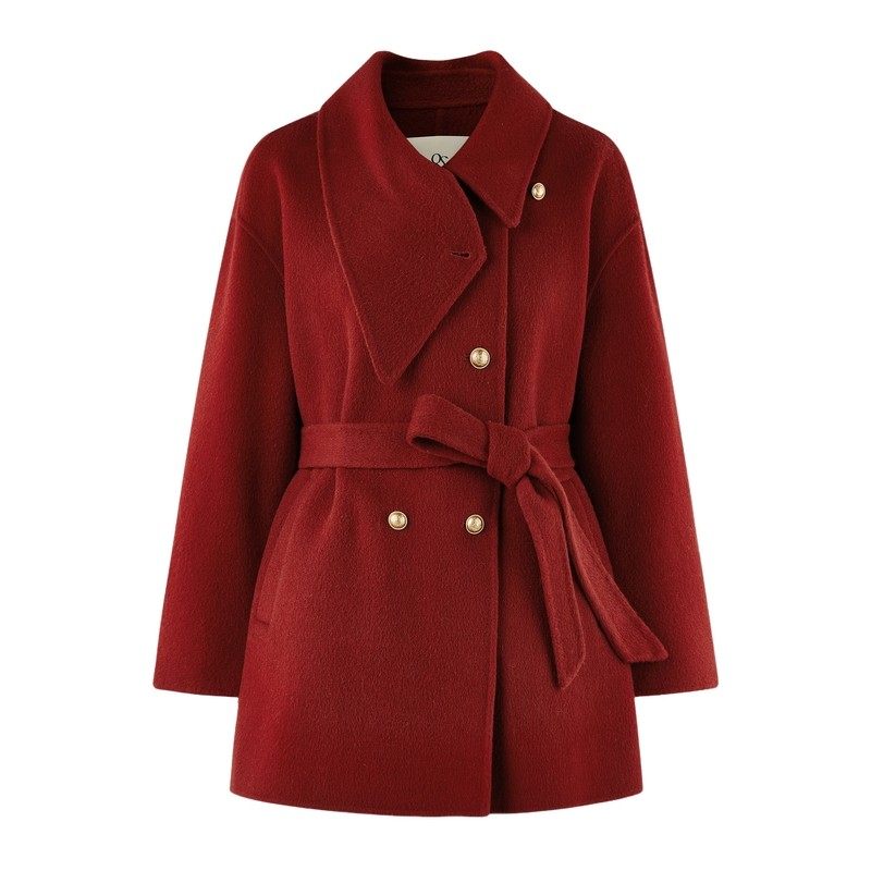 - 大红色大衣女中长款