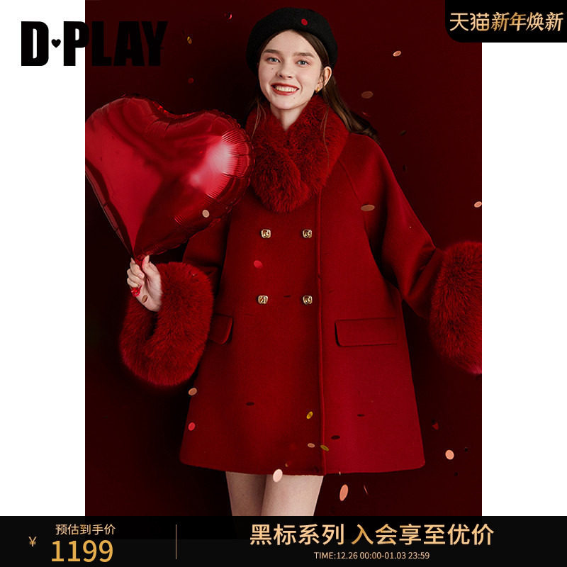- 毛领双面羊绒大衣女