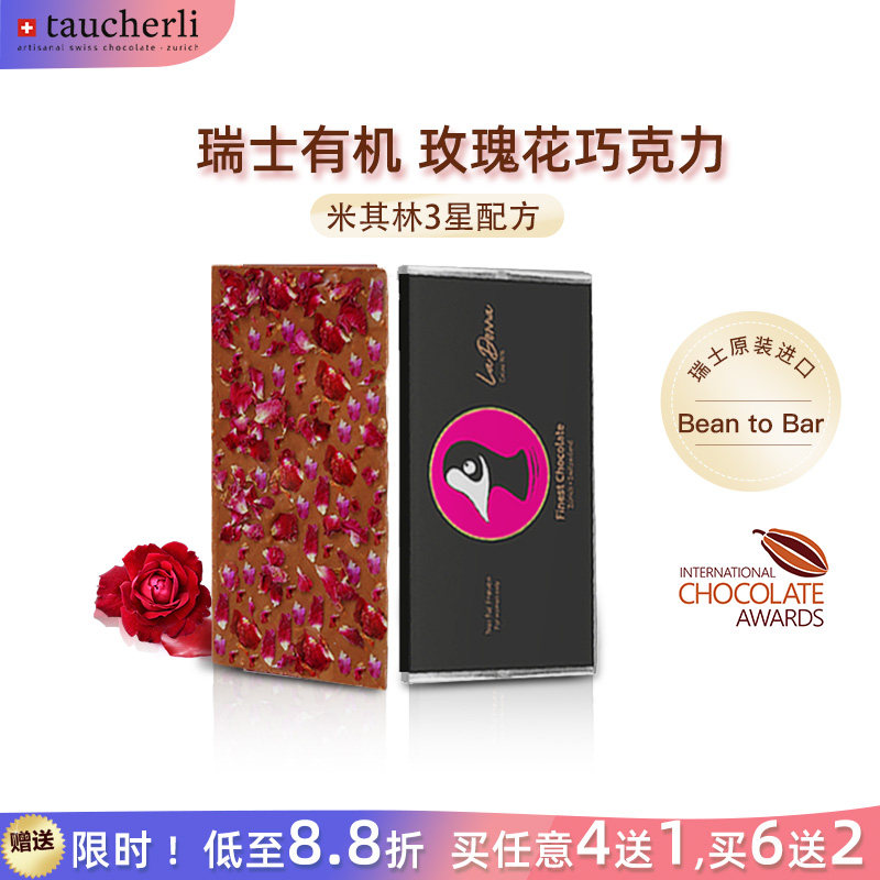 Taucherli瑞士陶合厘玫瑰有机牛奶巧克力情人节礼物送女友零食