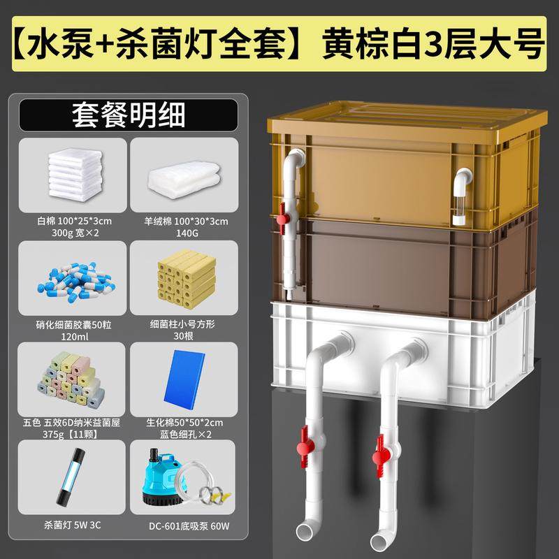 鱼缸过滤周转箱滴流培菌盒上滤三合一水循环系统龟缸鱼池过滤系统