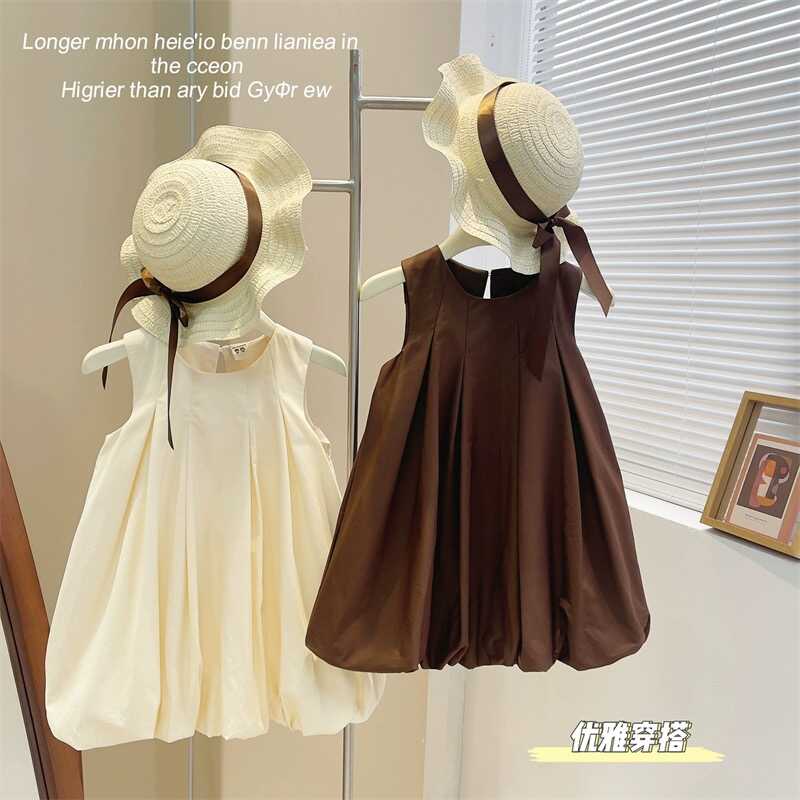 女童沙滩裙约洋气公主裙纯色百褶花苞气质背心连衣裙2025夏装新款