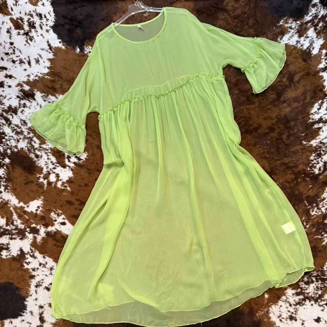 2025年夏季新款纯色真丝桑蚕丝连衣裙女宽松大码遮肉大摆裙沙滩裙