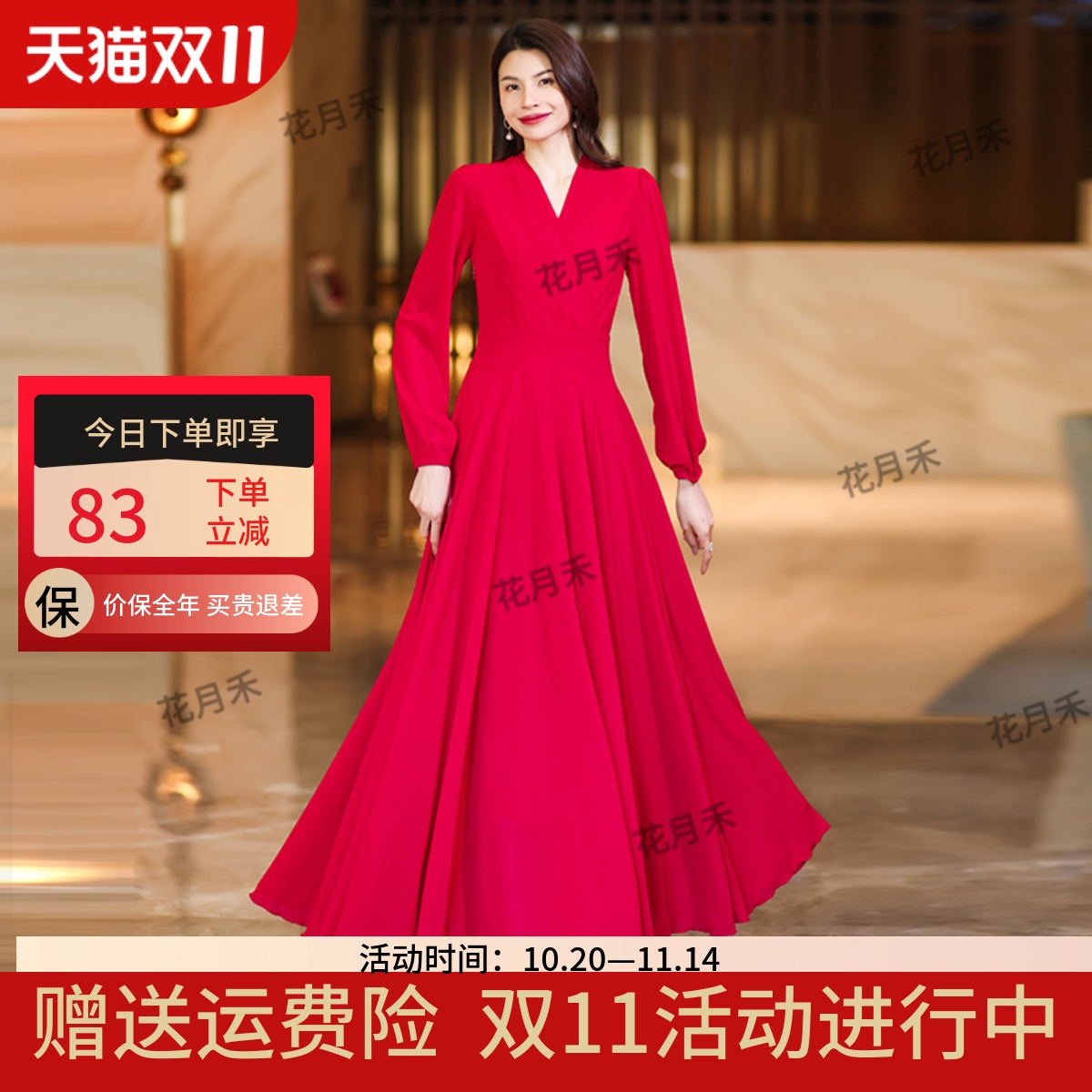 2025春秋冬纯色大红色连衣裙收腰显瘦长裙妈妈款短款小个子沙滩裙