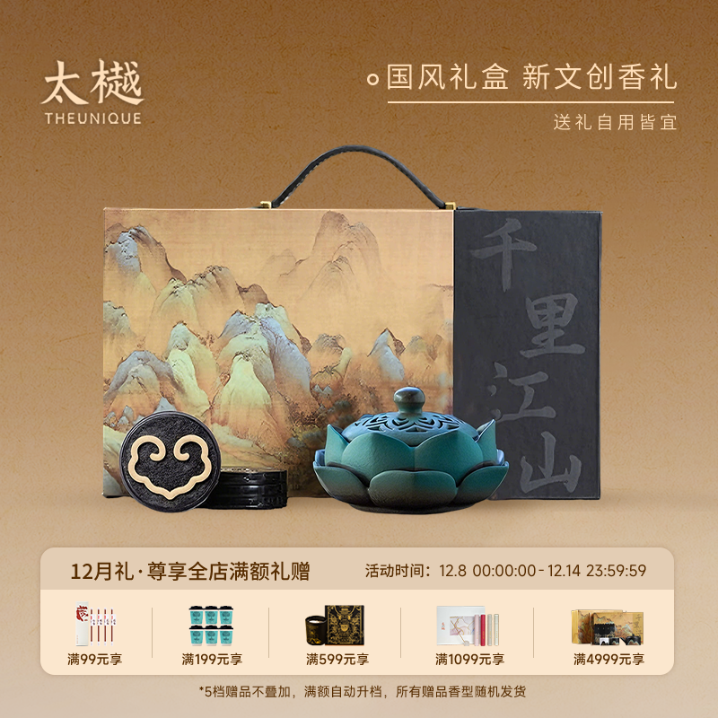 太樾|千里江山·莲花香炉次抛无粘沉香香片中式手提礼盒装伴手礼