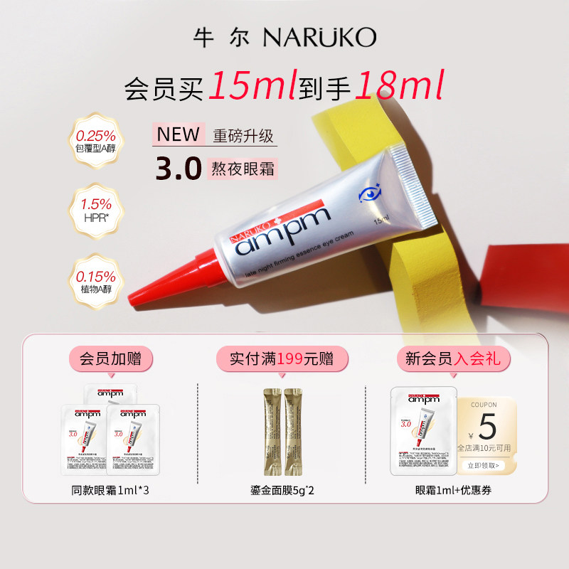 【3A双肽】牛尔视黄醇熬夜眼霜3.0抗皱紧致修护咖啡因a醇眼保湿