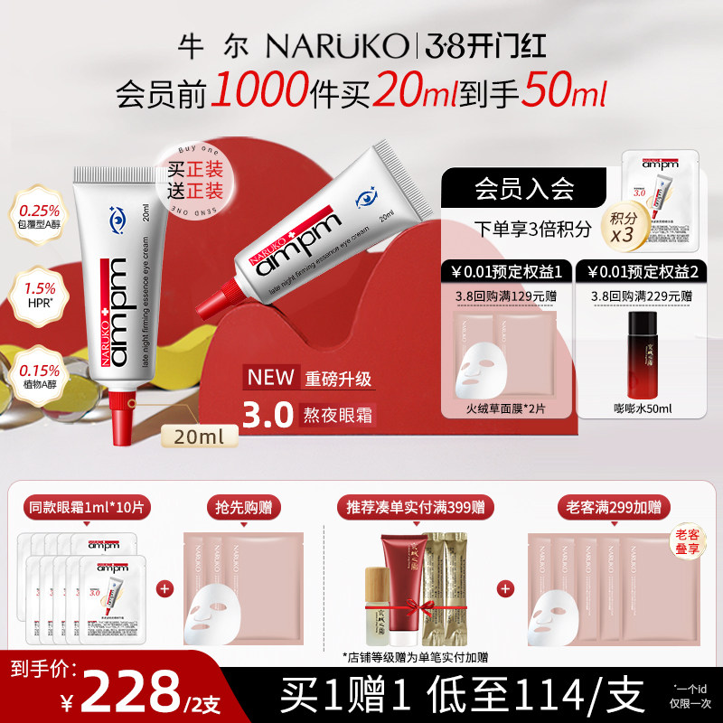 【u先试用】牛尔视黄醇熬夜眼霜3.0抗皱紧致a醇眼精华1ml*5