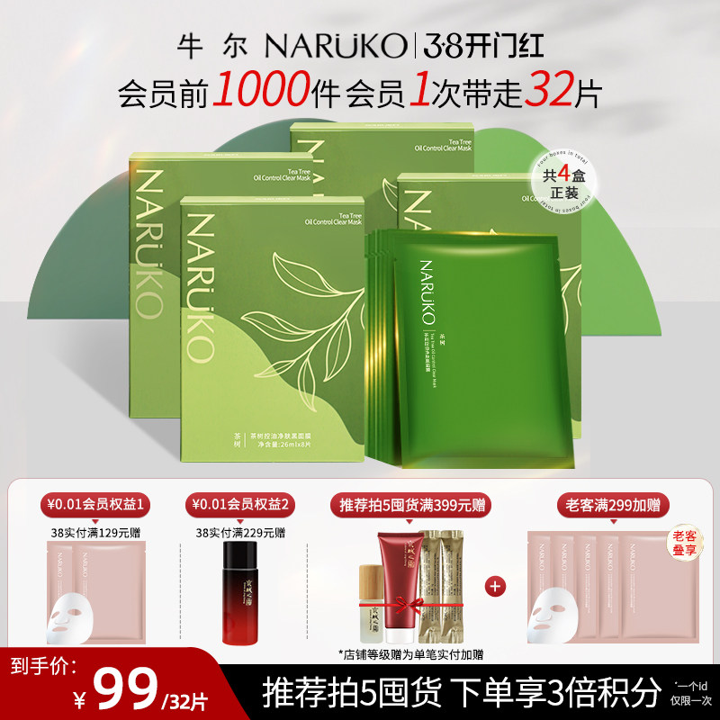 牛尔茶树黑面膜祛痘去粉刺补水保湿控油清洁收缩毛孔女男茶树面膜