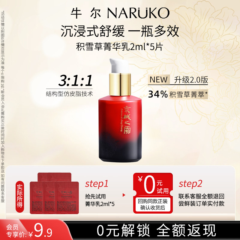 【U先试用】京城之霜34%积雪草神经酰胺紧致修护乳2ml*5片