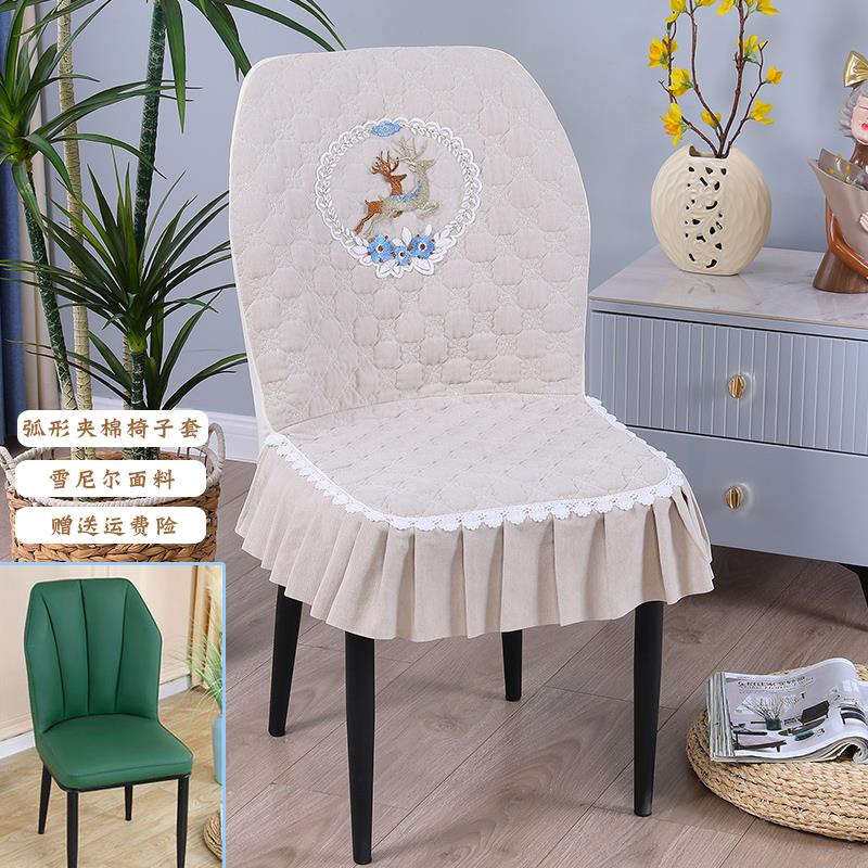 弧形轻奢椅子套罩坐垫靠背一体连体鹿夹棉雪尼尔扇形餐桌椅套椅垫