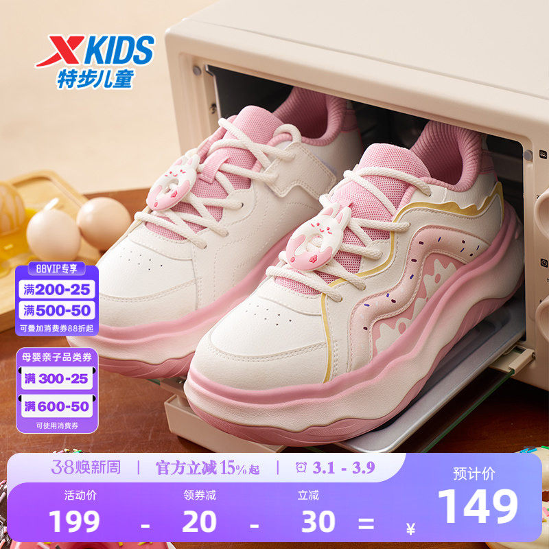 泰兰尼斯kids春秋款女童休闲鞋中大童运动鞋儿童轻便甜酷滑板鞋