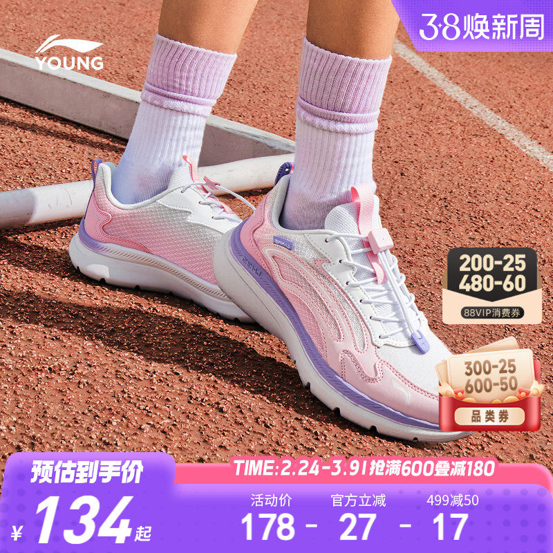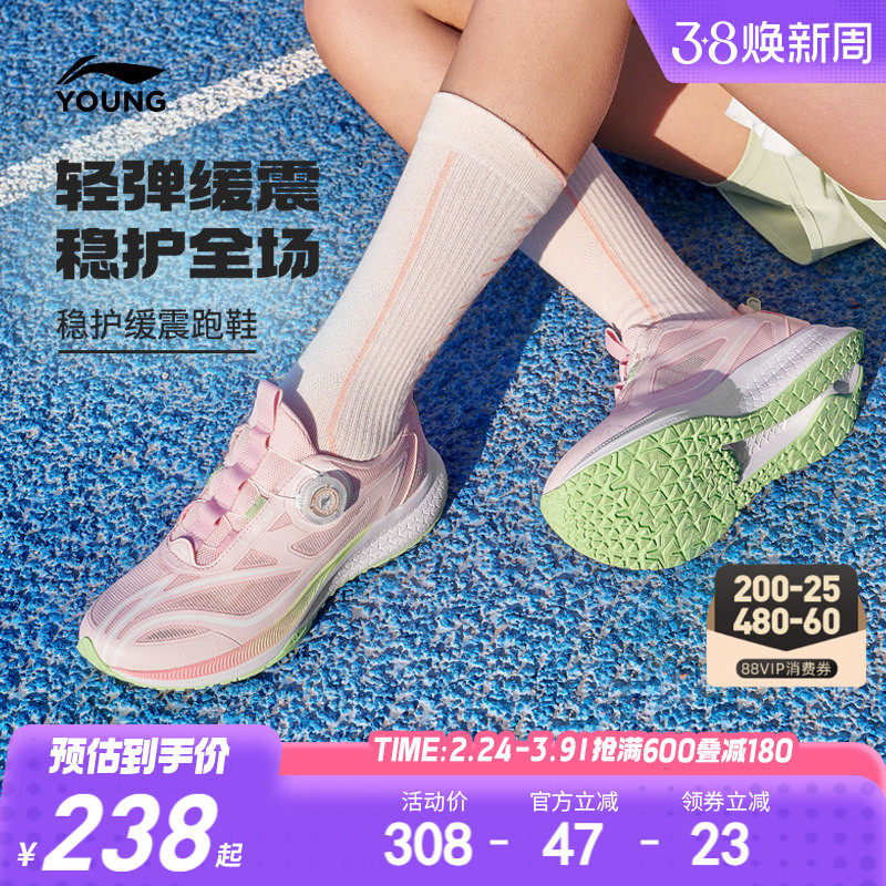 李宁小女孩专业跑步鞋超轻减震轻便软底春秋款女童鞋中大童运动鞋