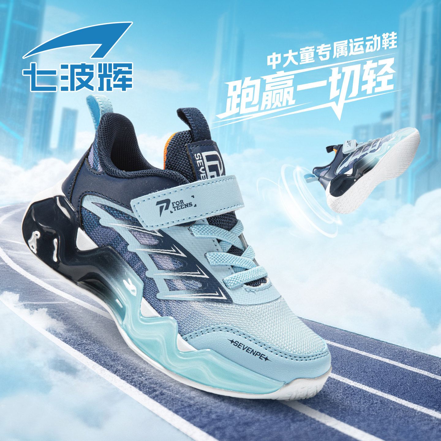 七波辉童鞋中大童运动鞋男童透气网面2026春秋款青少年学生跑步鞋