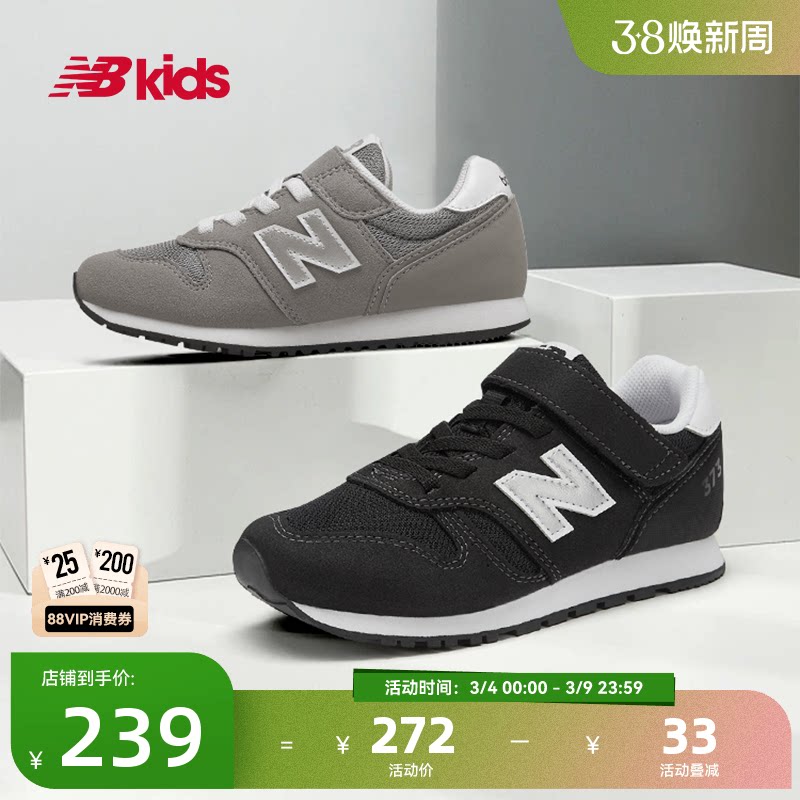 Newbalance nb官方童鞋 4-14岁中大童时尚纯色百搭休闲运动鞋373