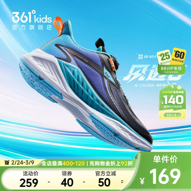 风透6|361度童鞋男童跑鞋2025年秋季新款旋钮扣密网中大童运动鞋