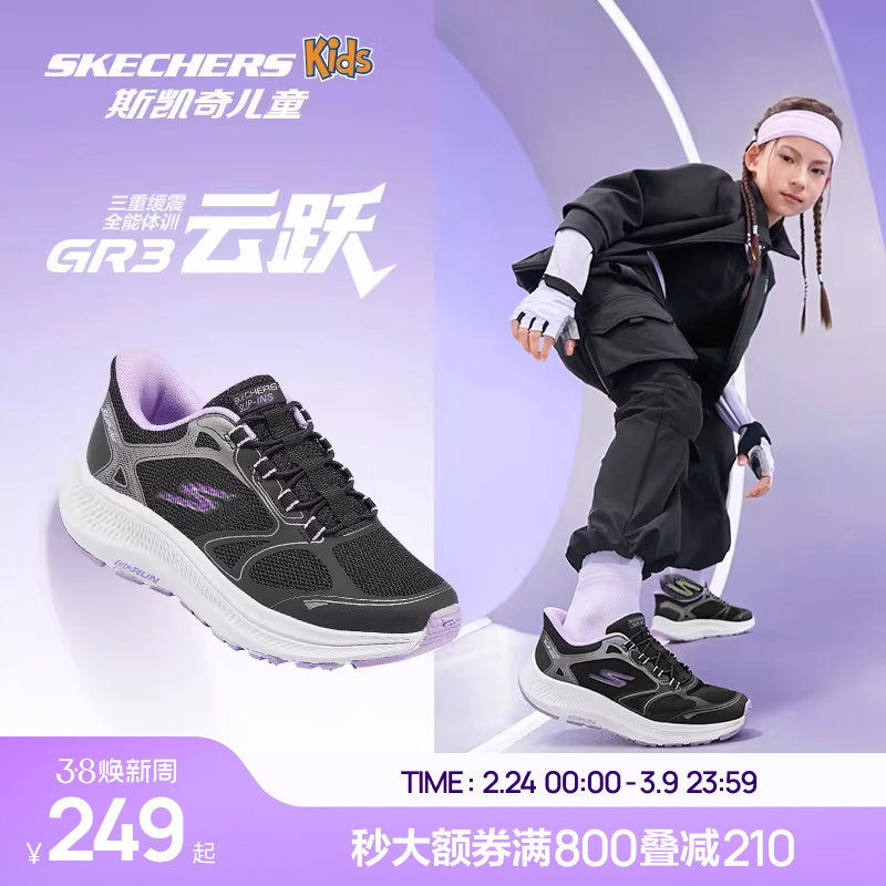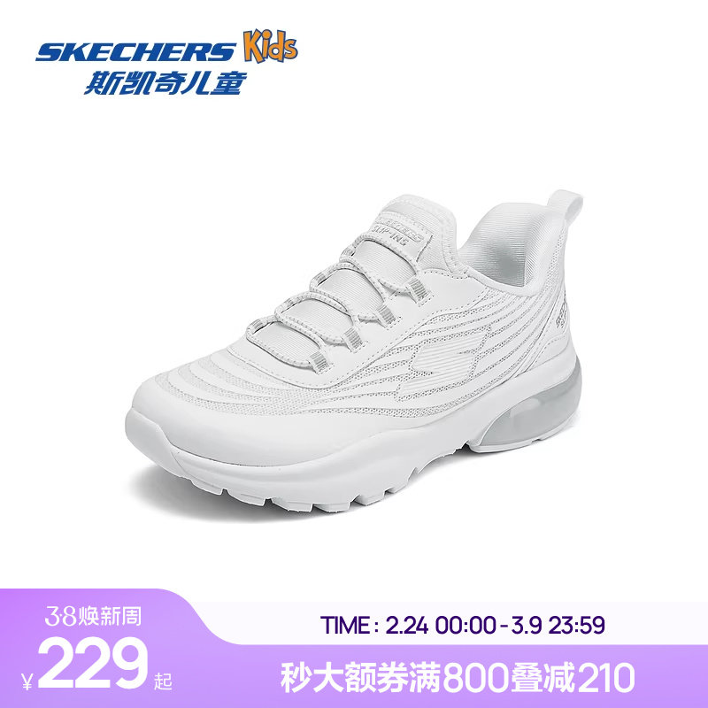 Skechers斯凯奇儿童云跃闪穿鞋女童减震跑步鞋春秋中大童运动鞋