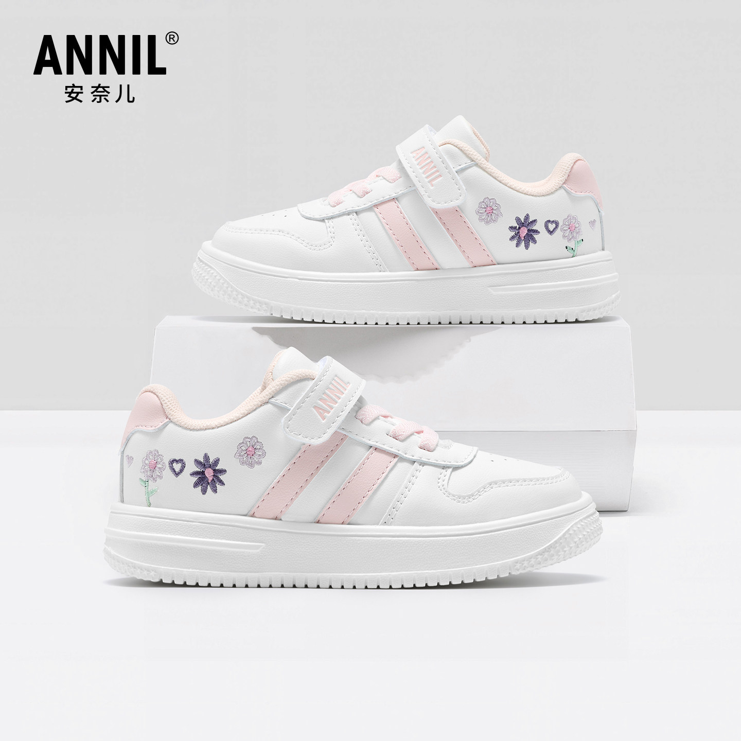 安奈儿女童板鞋白色2026新款春季中大童运动鞋轻便软底儿童小白鞋