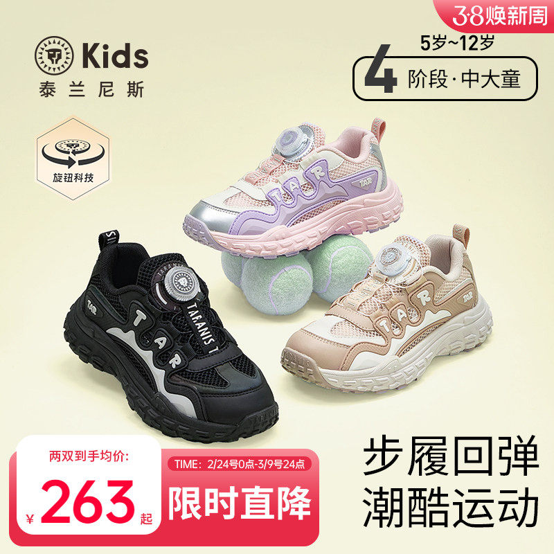 泰兰尼斯kids春款中大童运动鞋女童校园体训鞋男童旋钮跑步鞋