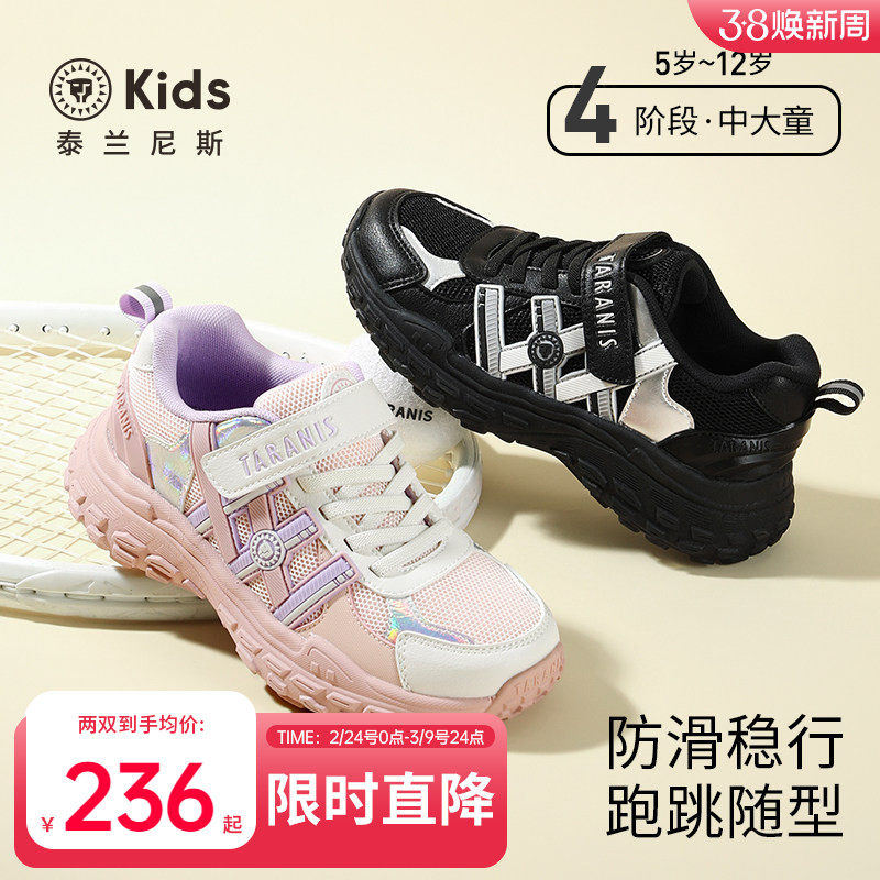 泰兰尼斯kids春款中大童运动鞋男童校园跑步鞋女童时尚休闲鞋