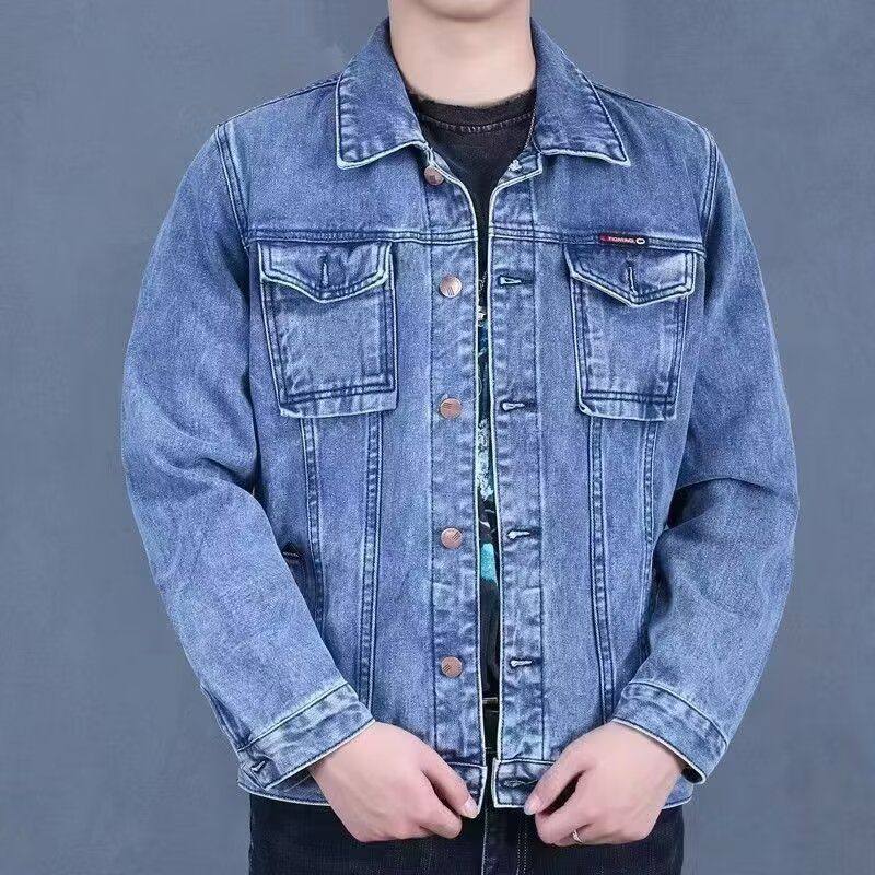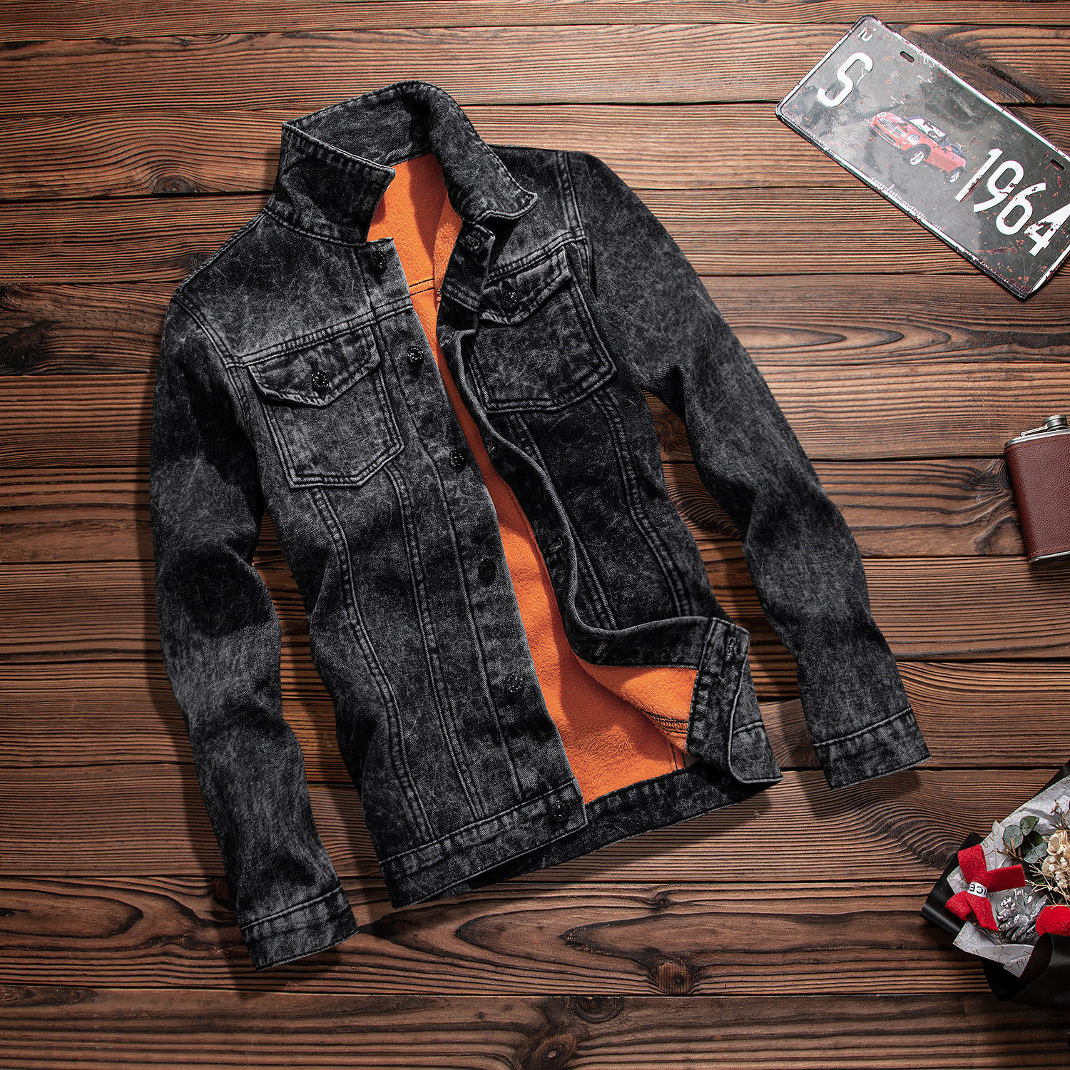 秋冬季加绒加厚牛仔外套男日系复古潮流修身ins韩版学生工装夹克