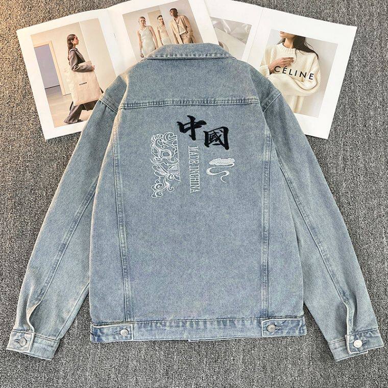 春秋季刺绣日系牛仔外套男韩版潮流潮牌网红男生修身工装夹克衣服