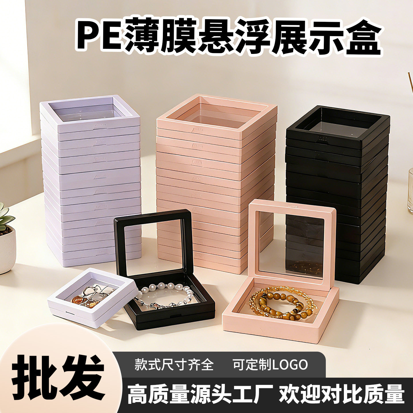 透明pe膜收纳盒首饰手串手链珠宝展示架饰品包装防氧化薄膜悬浮盒