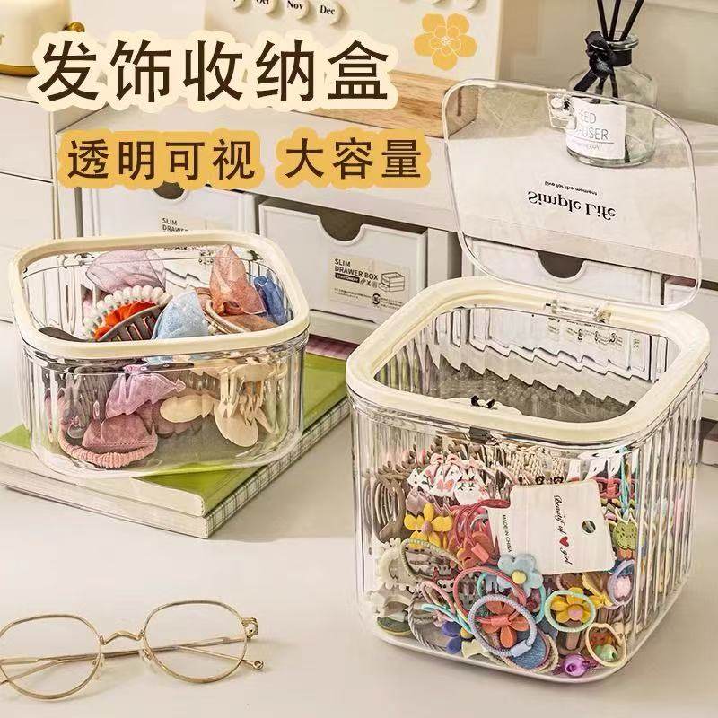 儿童发饰收纳盒桌面大容量带盖子首饰盒女生皮筋发圈发夹萌粒整理