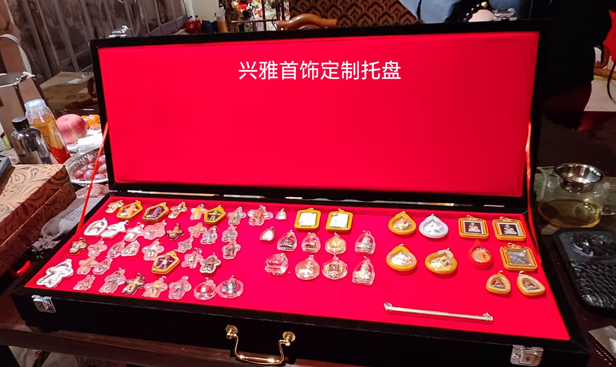 柜台红绒黄金首饰展示盘项链吊坠戒指珠宝看货托盘收纳盒耳环手镯