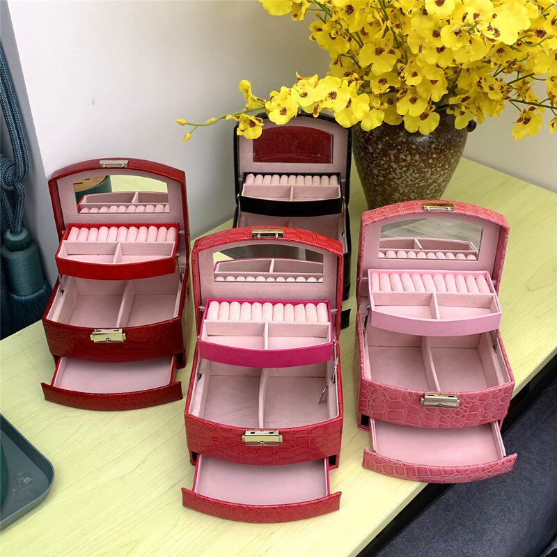 红色耳钉耳环项链收纳盒饰品首饰盒桌面简约耳饰品耳坠整理盒家用