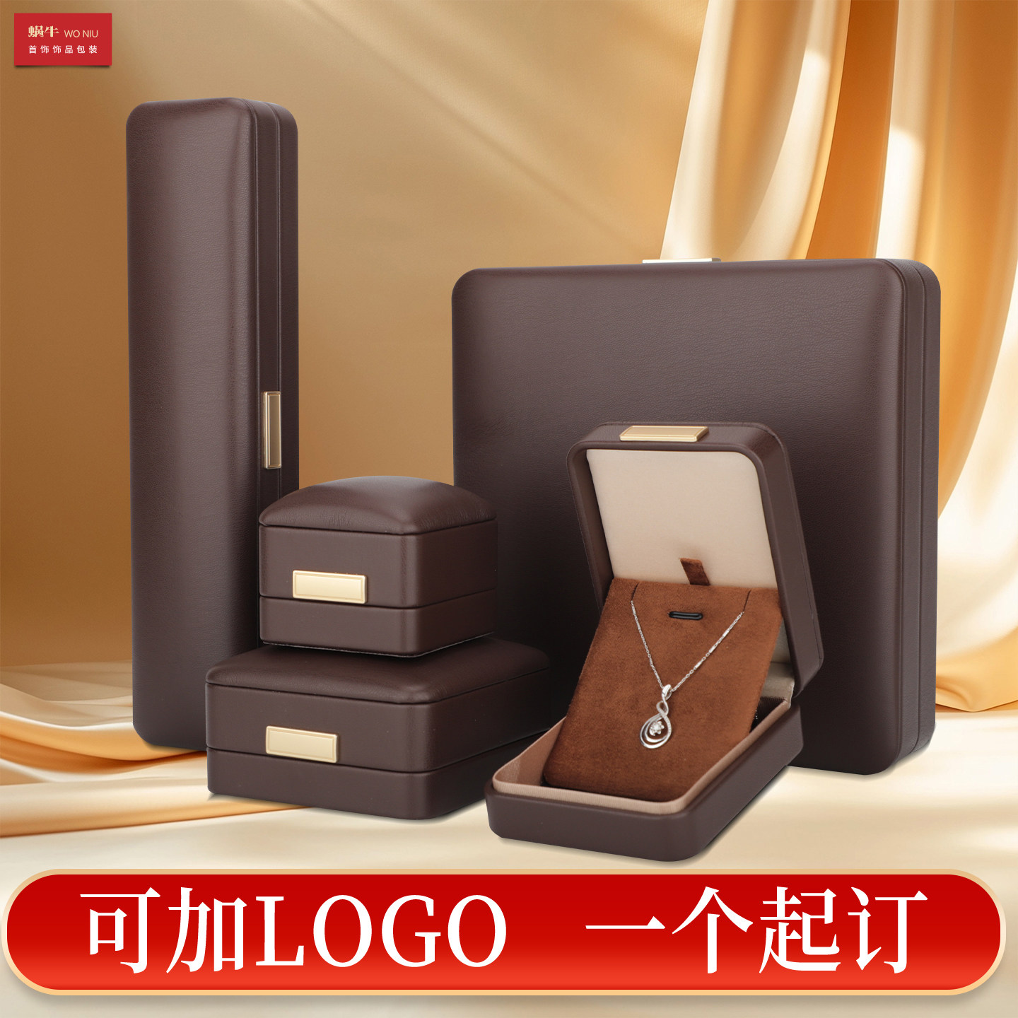 金标PU皮深咖色戒指吊坠包装盒手链项链套装珠宝首饰收纳盒可logo