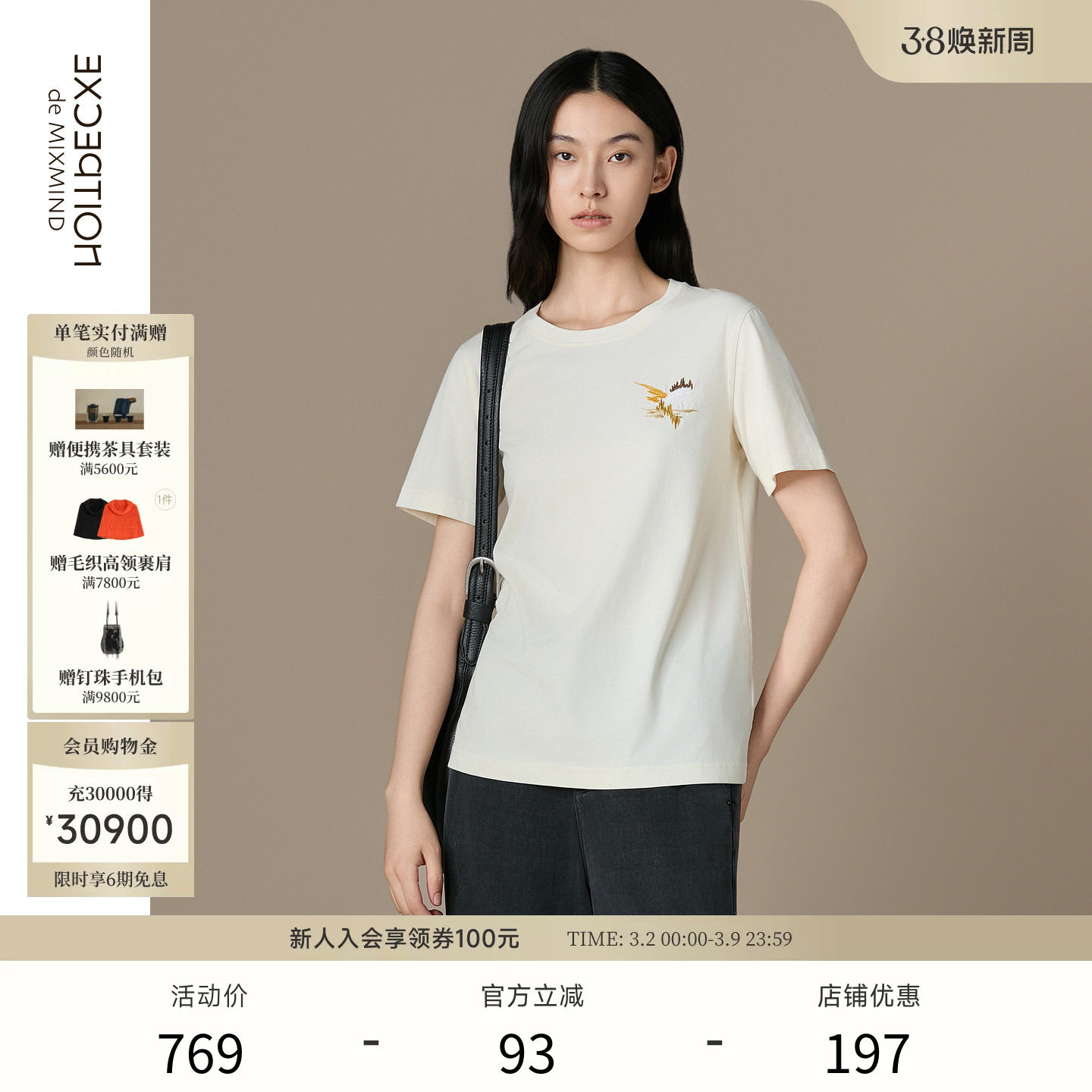EXCEPTION例外女装2025新品夏季短袖刺绣花时尚百搭通勤休闲棉T恤