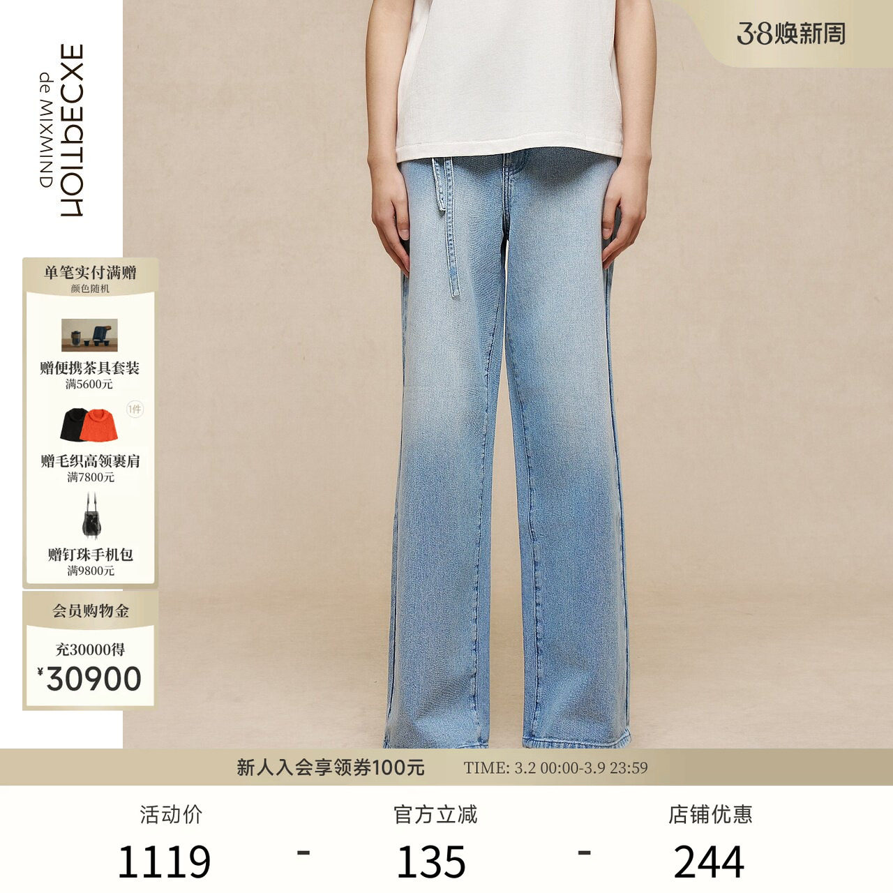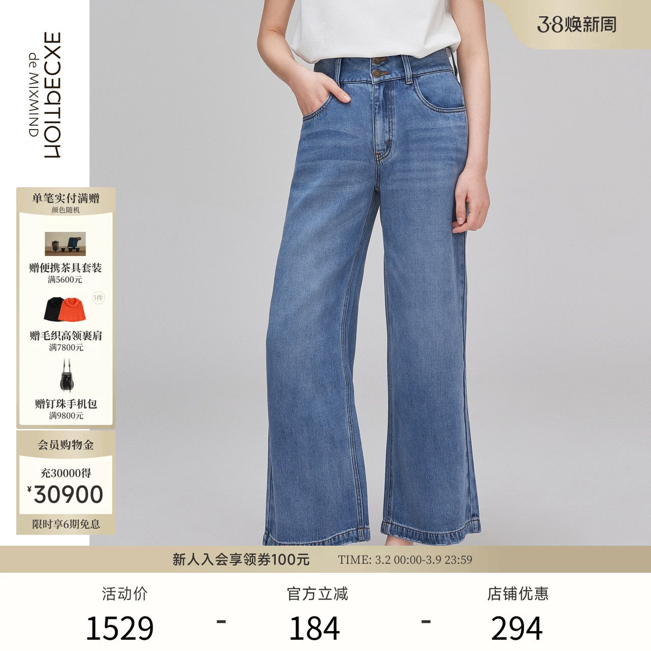 EXCEPTION例外女装春季裤子纯棉宽松版型阔腿裤牛仔裤女