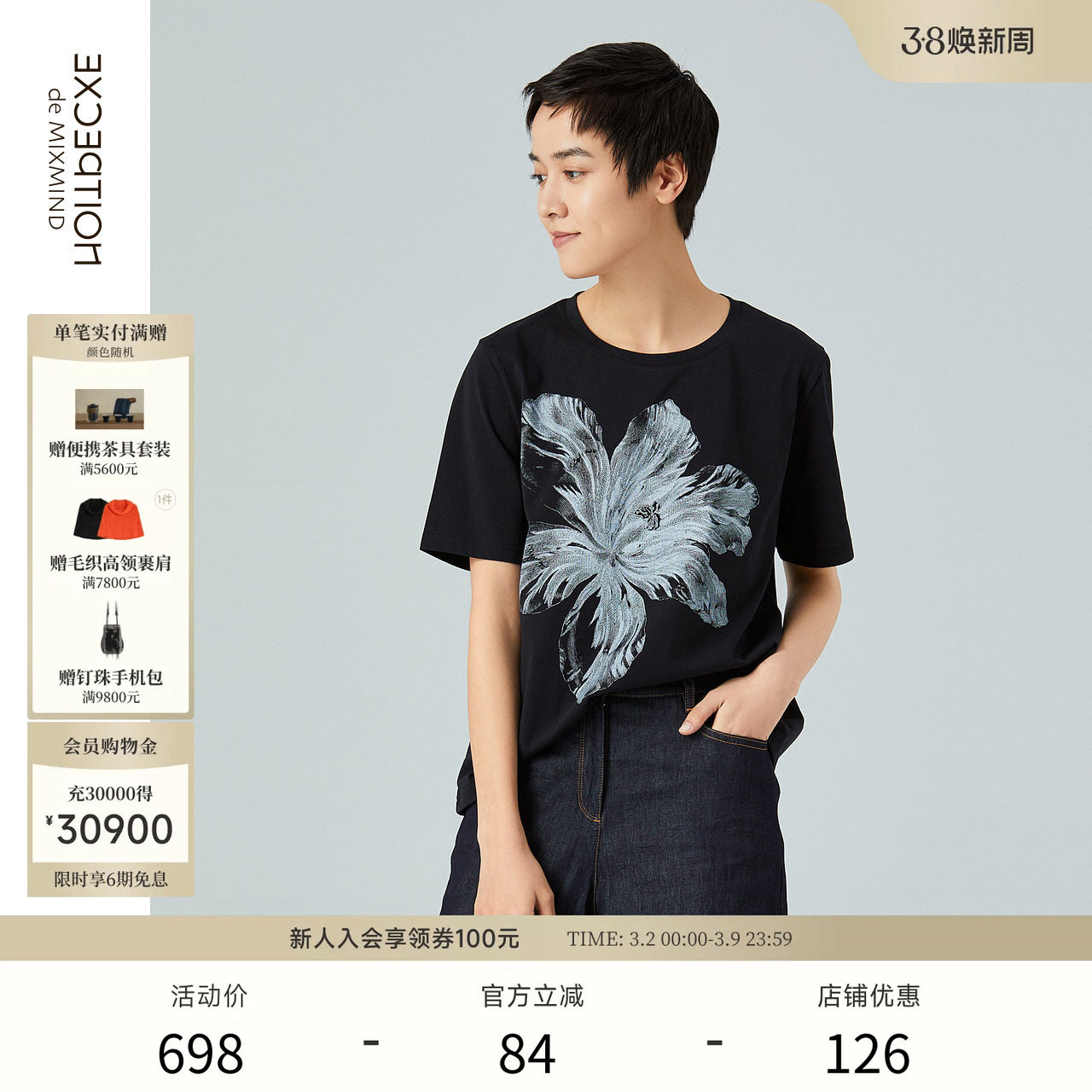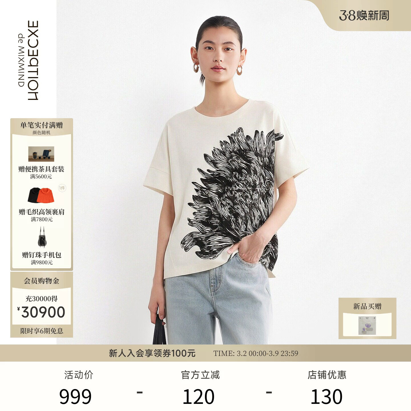 EXCEPTION例外女装中式艺术感印花简约圆领设计T恤宽松短袖上衣女