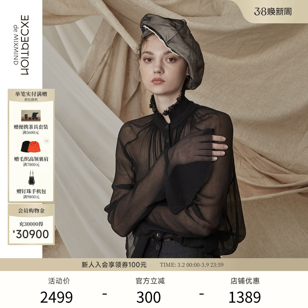 EXCEPTION例外女装原创设计桑蚕丝渔夫帽遮阳时尚真丝休闲帽子