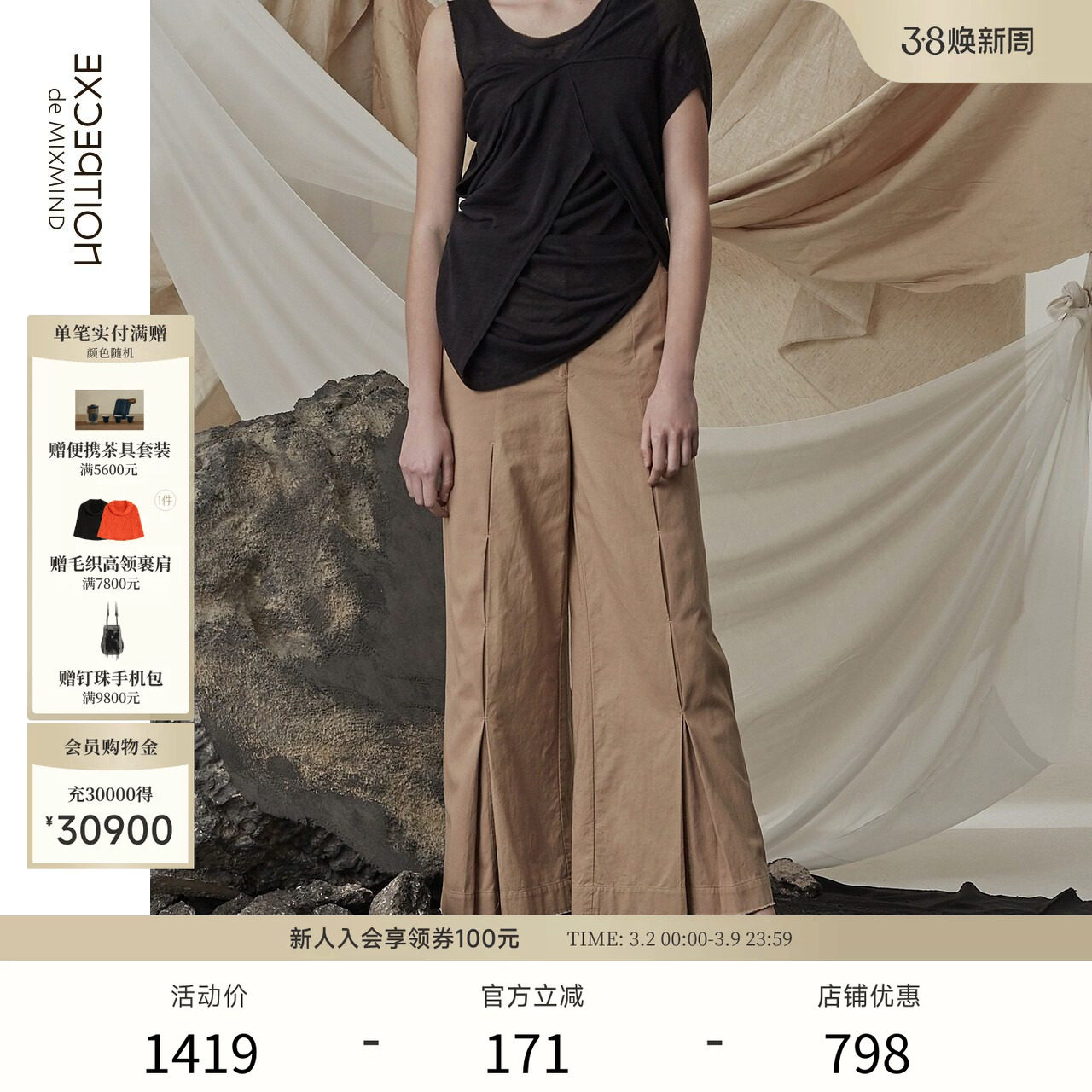 【TAK L.联名】EXCEPTION例外女装春秋休闲长裤纯棉宽松阔腿裤