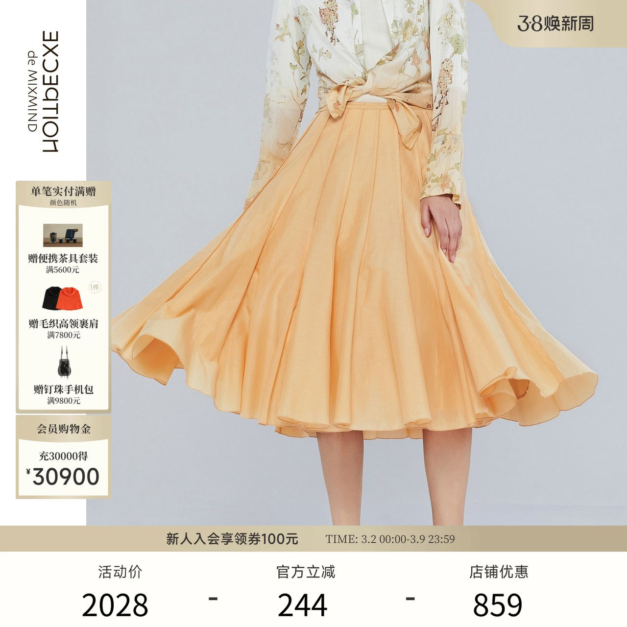 EXCEPTION例外女装春秋简约气质半身裙休闲优雅舒适丝棉A字伞裙