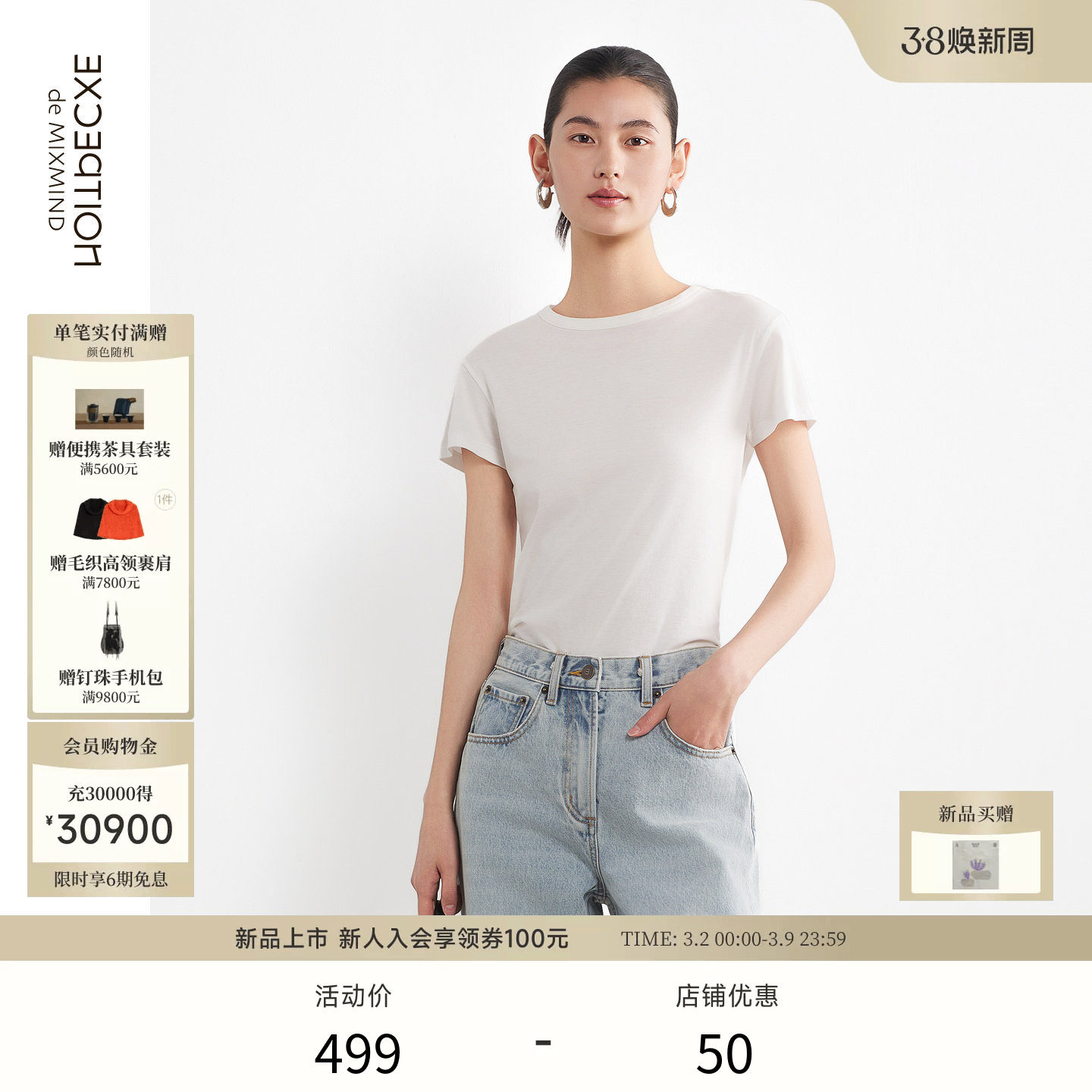 EXCEPTION例外女装2026春季新品简约圆领正肩版型合体剪裁显瘦T恤