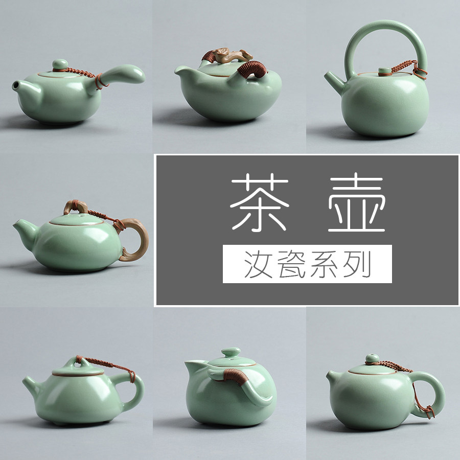 特价促销 粉青汝窑茶壶单壶|高档亮釉汝瓷复古家用陶瓷功夫茶具