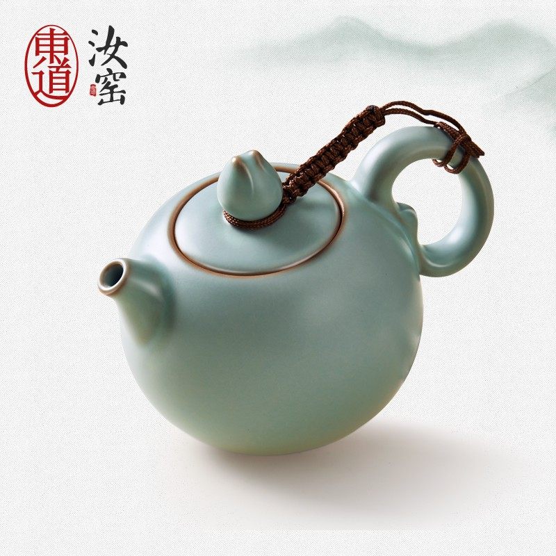 东道汝窑茶壶泡茶家用茶具办公室会客泡茶神器圆融单壶天青色汝窑